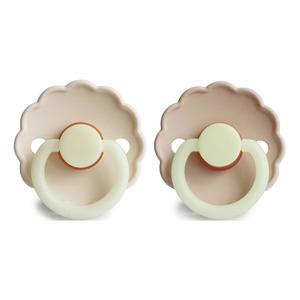 FRIGG Daisy Round Latex Cream night/Croissant night - 2-pakning med blomsterformede smokker i nydelig design og praktisk lateks.