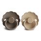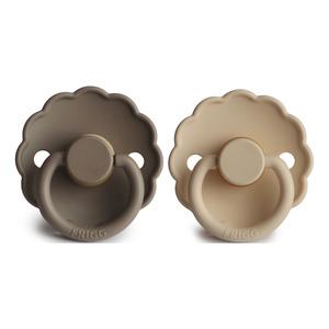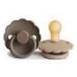FRIGG Daisy Round Latex Croissant/Portobello er en 2-pakning med elegante smokker i blomsterform.