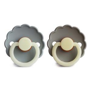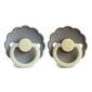 FRIGG Daisy Round Latex French Grey Night/Portobello Night er en 2-pakning med praktiske smokker i søt design.