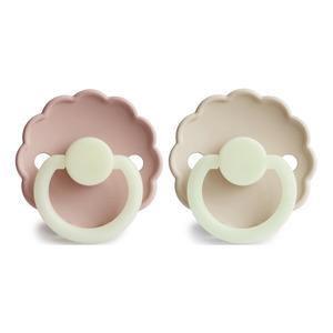 Denne 2-pakningen med smokker fra FRIGGS Daisy-kolleksjonen har et silisiumskjold som etterligner blomsterblader. Ideen om et blomsterlignende og detaljorientert design fanger oppmerksomheten til den stilbevisste mammaen. Smokken er et perfekt eksempel på hvordan mote møter funksjonalitet. Smokkene har både et elegant design og er utviklet for å matche det fysiologiske stadiet babyen befinner seg i. FRIGG Daisy har en rund tut som ligner mammas bryst i både form og materiale. Dette er en fordel fordi babyen skaper et vakuum med tungen rundt både mors bryst og smokken.
