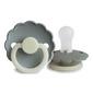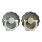 Denne 2-pakningen med smokker fra FRIGGS Daisy-kolleksjonen har et silisiumskjold som etterligner blomsterblader. Ideen om et blomsterlignende og detaljorientert design fanger oppmerksomheten til den stilbevisste mammaen. Smokken er et perfekt eksempel på hvordan mote møter funksjonalitet. Smokkene har både et elegant design og er utviklet for å matche det fysiologiske stadiet babyen befinner seg i. FRIGG Daisy har en rund tut som ligner mammas bryst i både form og materiale. Dette er en fordel fordi babyen skaper et vakuum med tungen rundt både mors bryst og smokken.