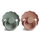 FRIGG Daisy Round Silicone Lily Pad/Rose Gold - 2-pakning med elegante smokker i søt fargekombinasjon