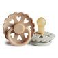 Smokkenefra FRIGG kommer i to ulike størrelser, der størrelse 1 måler 27 mm og passer til babyer i alderen 0-6 måneder. Størrelse 2 måler 30 mm og anbefales for babyer i alderen 6-18 måneder.