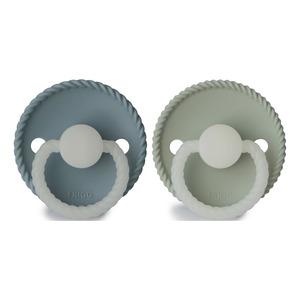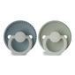 2-pakningen inneholder fargekombinasjonen Stone Blue Night/Sage Night. Smokkene har et selvlysende håndtak som gjør det lettere å finne smokken i et mørkt rom.