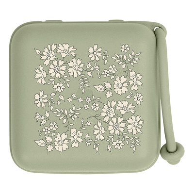 BIBS x Liberty Smokkboks Eloise i Capel Sage-design er en praktisk smokkboks med en stilig dekorasjon. Denne smokkboksen er laget av 100 % næringsmiddelgodkjent materiale og har plass til opptil tre BIBS-smokker om gangen. Boksen leveres med en innsats som har plass til en smokk øverst i boksen, mens hulrommet under innsatsen har plass til ytterligere to smokker. Smokkboksen er utstyrt med en silikonsnor som gjør det mulig å feste den til stellevesken, barnevognen eller barnesengen. Smokkboksen er multifunksjonell, da den også kan brukes til å sterilisere smokker i mikrobølgeovnen (kun smokker i silikon).