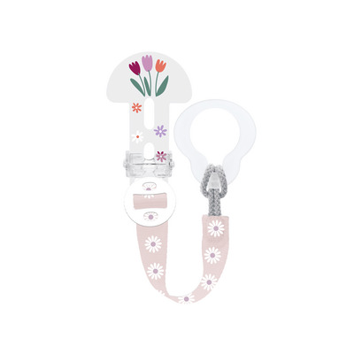 Fest smokkesnoren til barnets klær, og plasser smokken i holderen. Juster lengden etter behov. Perfekt for bruk både hjemme og på farten.