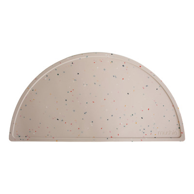 Mushie Silicone Placemat Vanilla Confetti er en slitesterk og flekkavvisende matte som effektivt beskytter bordet.