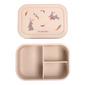 Filibabbas matboks i silikon i fargen "Toasted Almond" er designet for å gjøre måltidene både praktiske og morsomme for barnet ditt. Den er laget av 100 % silikon av matvarekvalitet, noe som også gjør den robust, slitesterk, myk og fleksibel. Den har en kapasitet på 700 ml og er inndelt i 3 rom som holder maten adskilt og organisert slik barn liker det. Det fleksible lokket sørger for at alt holder seg på plass, selv under de mest eventyrlige matpakker. Silikonmaterialet garanterer at matboksen ikke sprekker eller går i stykker. Den kan enkelt rengjøres i oppvaskmaskinen. Velg mellom de sjarmerende motivene av kaniner eller bondegårdsdyr for å gjøre måltidene enda mer innbydende.