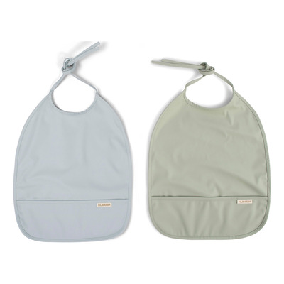 Filibabba Bib med slips 2-pakning i fargene Pearl Blue + Desert Sage bindes i nakken for en behagelig passform