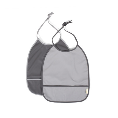 Smekke med snøring fra Filibabba - 2-pakning med smekke i komplementære, grå nyanser