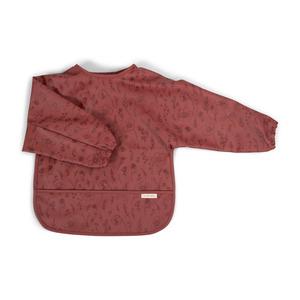 Smekken med ermer fra Filibabba er laget av 100 % PU med 100 % resirkulerbar polyester på baksiden, noe som gjør den behagelig for barnet å ha på seg. Denne varianten er i et vakkert rødlig design, men finnes også i andre farger og mønstre.