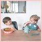 Dette smarte settet i 4 deler består av skål, skje, kopp og smekke av 100 % matsikker silikon. Settet passer for småbarn mellom 6 og 12 måneder. Avvenningssettet støtter barnets finmotoriske utvikling, slik at barnet kan lære å spise selv. Settet kan vaskes i oppvaskmaskin.