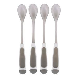 Dette settet består av fire skjeer som er designet for å gjøre de første skrittene inn i fast føde så enkle og morsomme som mulig. De lange skjeene er nøye utformet for å gjøre det enklere for foreldre å spise og for å støtte barnets første forsøk på å spise selvstendig. Det lange håndtaket gir et godt grep for både voksne og barn, noe som er til stor hjelp når de små skal lære å navigere skjeen fra tallerkenen til munnen.