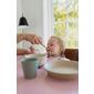 BIBS skjesettet består av en liten skje som barnet kan bruke selv og en litt større skje til forelderen. Med den lille babyskjeen kan barnet øve seg på å spise selv, mens forelderen kan hjelpe til med den litt større skjeen. Skjene er laget i ergonomisk design og sklisikre materiale, slik at barnet enkelt kan holde skjeen.