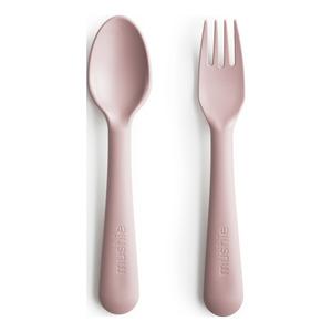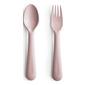 Mushie Fork & Spoon i fargen Blush er ideell for å introdusere fast føde for babyer.