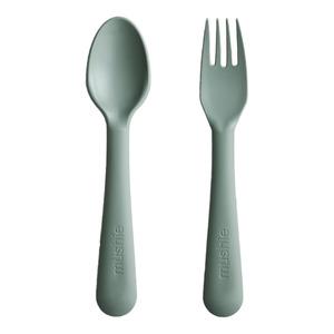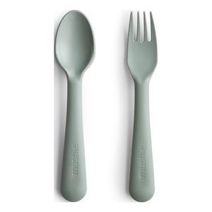 Mushie Fork & Spoon Sage er bestikk som er perfekt for babyens første møte med fast føde.