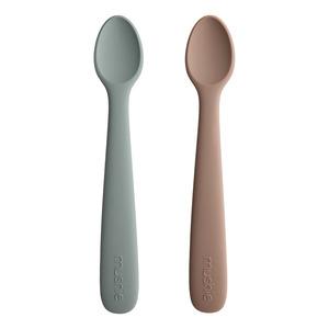 Disse Mushie-skjeene i silikon av matvarekvalitet har et ekstra mykt hode slik at de ikke støter mot barnets tenner eller gane under matingen. Disse skjeene er laget av et kjemikaliefritt materiale og er en bekymringsfri måte å introdusere babyen for fast føde på.