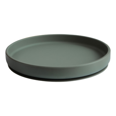 Mushie Silikontallerken i fargen Dried Thyme er en innovativ barnetallerken med sugekopp i bunnen.