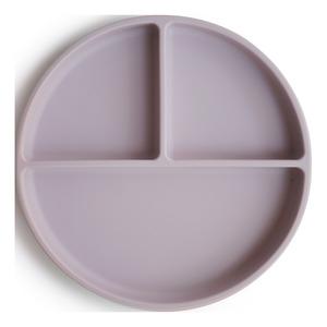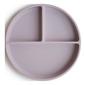 Mushie Silicone Plate Compartmentalised Soft Lilac - praktisk barnetallerken som kan festes til bordet ved hjelp av sugekoppen.