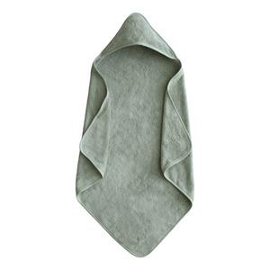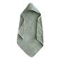 Mushie Baby Towel Moss har en koselig hette som holder babyen komfortabel etter badet.