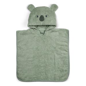 Supermyk poncho med hette til småbarn. Ponchoen er brodert med et dyreansikt og et øre på hetten og er laget av 100 % økologisk bomullsfrotté. Bomullsfrottéen er ikke bare supermyk, den holder også barnet ditt varmt og godt.