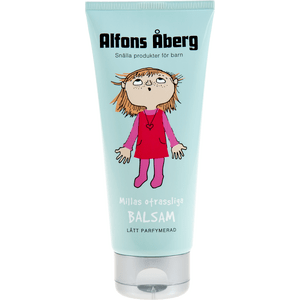 Millas Herlige Balsam fra Albert Åberg er en herlig og nærende balsam for barn. Vi kjenner alle til Milla som Albert sin gode venn, som alltid er morsom å leke med. Derfor er denne balsamen også laget for å ha det gøy i badekaret mens barnet skal vaske håret. Balsamen nærer og pleier skjørt hår og forvandler floker og uregjerlig hår til et mer håndterlig hår som enkelt kan gres ut. Den er mildt parfymert.