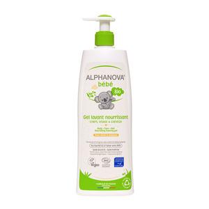 Denne såpefrie vasken for kropp, ansikt og hår fra Alphanova er en lett, nærende og skummende gel for daglig pleie av babyer som har en tendens til tørr og ødelagt hud samt sensitiv hud. Vaskegelen er både organisk og vegansk.