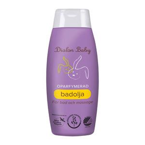 Dialon Baby Badeolje er formulert med naturlige, nærende planteoljer som gjør barnets hud myk og glatt. Badeoljen kan brukes i badet eller til massasje. Badeoljen inneholder dessuten nordisk havreolje som hjelper med å gjenoppbygge, beskytte og styrke barnets sensitive hud.