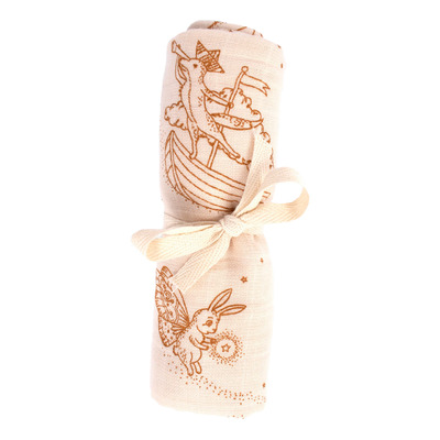 Filibabba Cloth Nappy GOTS - Dreamy Adventurers er en praktisk og allsidig tøybleie som kan brukes til amming, bleieskift, raping eller som vaskeklut og kosevenn. Den er laget av 100 % økologisk bomull og har en løs veving som gjør den ekstra pustende og myk mot babyens sarte hud.