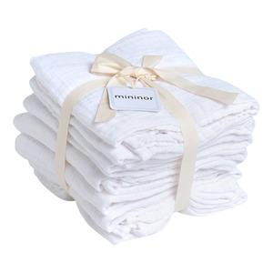 Som bleietrekk, koseklut, teppe eller skygge i barnevognen – bruksområdene for Mininor muslinkluter er uendelige! De hvite klutene fra Mininor måler 70x70 cm og er derfor ideelle til en rekke formål. Selve stoffet er laget av dobbeltvevd bomull, noe som sikrer høy kvalitet og minimerer risikoen for rifter. Klutene absorberer og tørker dessuten raskt.