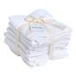 Muslinklutene er hvite, men finnes også i grønn/grå (6 stk.) og rosa/lilla (6 stk.).