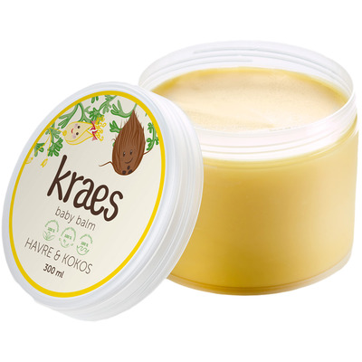 KRAES Baby Balm er en myk og nærende balm som brukes daglig for å lindre tørr hud, irritert og kløende hud, samt småsår og ømme brystvorter m.m. Balmen består av 7 nøye utvalgte ingredienser; ferskenolje, kokosolje, sheasmør, bivoks, havreolje og castorolje. Balmen inneholder kolloidhavre, som er en aktiv ingrediens som er kjent for å virke kløestillende, redusere rødhet og hevelse.