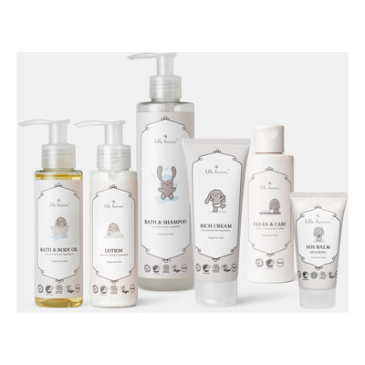 Denne pakken inneholder hele serien med hudpleieprodukter fra Lille Kanin. Den gir deg muligheten til å prøve produktene til deg selv og babyen din, men er også en ideell gaveidé til vordende eller nybakte foreldre. Hudpleiefamilien fra Lille Kanin er "ren kjærlighet på flaske" som skånsomt pleier huden. Hvert produkt i familien er formulert med naturlige ingredienser, dermatologisk testet og sertifisert vegansk, slik at du bare gir babyen din det beste.