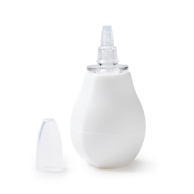 Trykk på pumpen FØR du setter den inn i nesen. Før den myke tuppen forsiktig inn i barnets nese, og sug deretter. Om nødvendig kan du supplere med saltvannsdråper for å løsne slim som sitter fast.