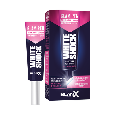 Ønsker du hvitere tenner, men ikke orker å sette deg inn i både påføring og LED-lys? Tannblekingspennen er lett å ha med på farten i en veske eller lomme så du enkelt og raskt kan påføre produktet på tennene med den myke toppen på pennen. BlanX White Shock er det eneste tannblekingsmiddelet som er basert på ActiluX, som bleker tennene når det kommer i kontakt med lys. Produktet kan brukes hver dag når som helst hele dagen uten at du skader tennene dine, selv om de aktive ingrediensene holder seg aktive på tennene fra morgen til kveld.