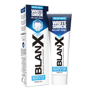 Vil du gjerne ha hvitere tenner, men ønsker en mer skånsom og naturlig metode enn tradisjonell tannbleking? BlanX White Shock er den eneste tannkremen som er basert på ActiluX, som bleker tennene når det kommer i kontakt med lys. Tannkremen kan brukes hver dag hele dagen uten at du skader tennene, selv om de aktive ingrediensene holder seg aktive på tennene fra morgen til kveld.