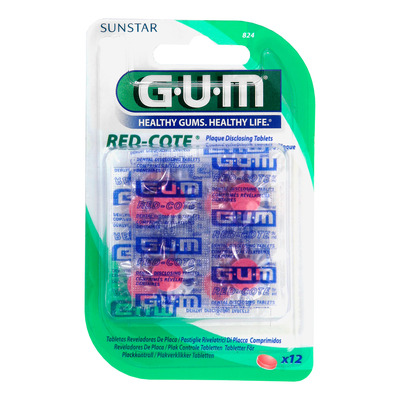 Gum Red-Cote: Den velkjente fargetablett mange husker fra skoletannlegen, hvor man som barn skulle lære å børste tenner riktig.