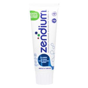 Zendium Classic er en tannkrem med enzymer, colostrum og fluor som styrker munnens naturlige forsvarssystem og reduserer risikoen for hull i tennene. Den skummende ingrediensen i Zendium Classic er mild og godt egnet for personer med tørre og følsomme slimhinner. Slipemiddelet i tannkremen er skånsomt, slik at du unngår slipeskader på tennene.