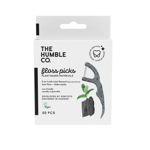 Plantebaserte Dental Floss Picks fra The Humble Co. med rensende, aktivt kull