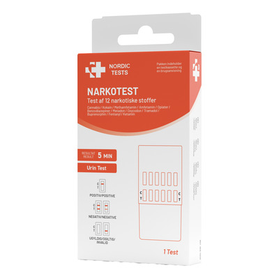 Nordic Tests 12-narkotikatest påviser 12 rusmidler og deres nedbrytningsprodukter i en urinprøve. Testen er ikke beregnet for medisinsk eller diagnostisk bruk, men kan brukes som et første, veiledende screeningverktøy. Et positivt resultat er veiledende og bør bekreftes med en laboratorietest. Testen påviser cannabis (THC), kokain (COC), amfetamin (AMP), metamfetamin (MET), opioider, benzodiazepiner og ytterligere stoffer opp til totalt 12.