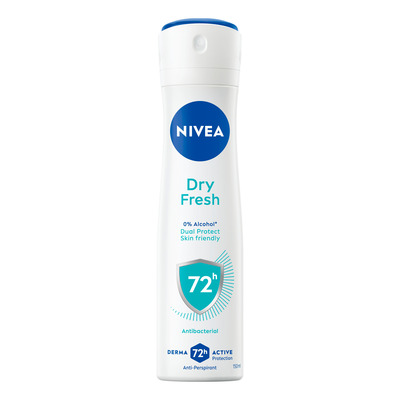 Nivea Dry Fresh Deospray er en antiperspirant deodorant som holder deg tørr i opptil 72 timer. Deodoranten gir effektiv beskyttelse mot svette og lukt og pleier huden under armene. Den har en lett og frisk duft som gjør at du føler deg oppfrisket hele dagen. Spraydeodoranten er også dermatologisk testet.