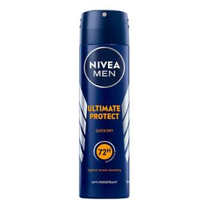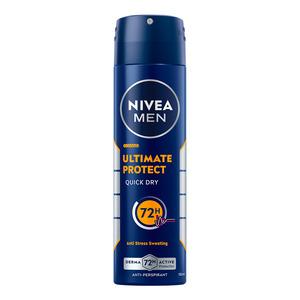 Nivea Men Ultimate Protect Deospray er en antiperspirant deodorant som holder deg tørr i opptil 72 timer. Deodoranten gir effektiv beskyttelse mot svette og lukt, slik at du kan føle deg frisk hele dagen. Den gir optimal beskyttelse i stressende situasjoner og inneholder Zinc complex. Spraydeodoranten er også dermatologisk testet.