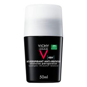 Vichy Homme 48H Anti-Irritations Anti-Perspirant er spesielt utviklet for menn med sensitiv hud som ønsker en deodorant og antiperspirant med langvarig effekt. Formelen er beriket med Vichy Mineralising Thermal Water som beroliger huden og reduserer ubehag i opptil 48 timer. Deodoranten gir effektiv beskyttelse mot svette og lukt i 48 timer, er frisk og myk ved påføring og etterlater ingen hvite merker på huden.