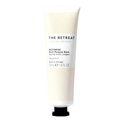Retreat Restoring Multi-Purpose Balm er tilsatt rosa og klar kvartskrystall og kan brukes på tørre områder som lepper, albuer, hæler og neglebånd. Den kompakte størrelsen på 30 ml gjør den enkel å ta med seg på farten. Passer for alle hudtyper med fokus på tørre og irriterte områder.