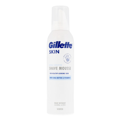 Gillette Skin Ultra Sensitive Shave Mousse er en barberingsmousse for sensitiv hud med sheasmør og E-vitamin.