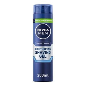 Nivea Men Protect & Care Shaving Gel er en barbergel for menn som gir en jevn og behagelig barbering. Barberingsgelen er formulert med aloe vera og pro-vitamin B5 for å gi næring og beskytte huden mot tørrhet. Den bidrar til å styrke hudens naturlige forsvar og forbereder huden på barbering. Denne barberingsgelen mykgjør skjegget, gjør barberingen mykere og mer behagelig og beskytter mot hakk og kutt etter barbering.