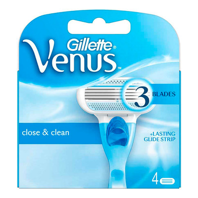 Venus glatte barberblad med beskyttende pads omgitt av 3 blader gir en jevn, tett barbering med ett enkelt strøk. Barberhode med 3 barberblader for en tett barbering. Beskyttelsesputer for en praktisk talt smertefri barbering