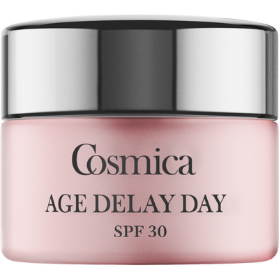 Cosmica Age Delay Day SPF30 er en effektiv anti-age dagkrem for alle hudtyper som aktivt motvirker aldringstegn som rynker, store porer og en mindre spenstig hud. Kremen inneholder blant annet vitamin C og E, som beskytter huden mot frie radikaler, samt Niacinaid, som bidrar til å redusere store porer, jevner hudtonen, og styrker hudens elastisitet.