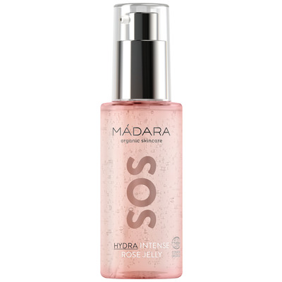 Mádara SOS Hydra Intense Rose Jelly er spesielt egnet for tørr og stresset hud med behov for lindring. Gelkremen er også sertifisert av EcoCert, cruelty-free og vegansk. Den har en veldig lett gelkonsistens, som er lett å påføre og trekkes raskt inn i huden uten å virke klissete.