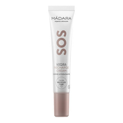 Mádara SOS Hydra Recharge Cream fukter, fornyer og beroliger huden.